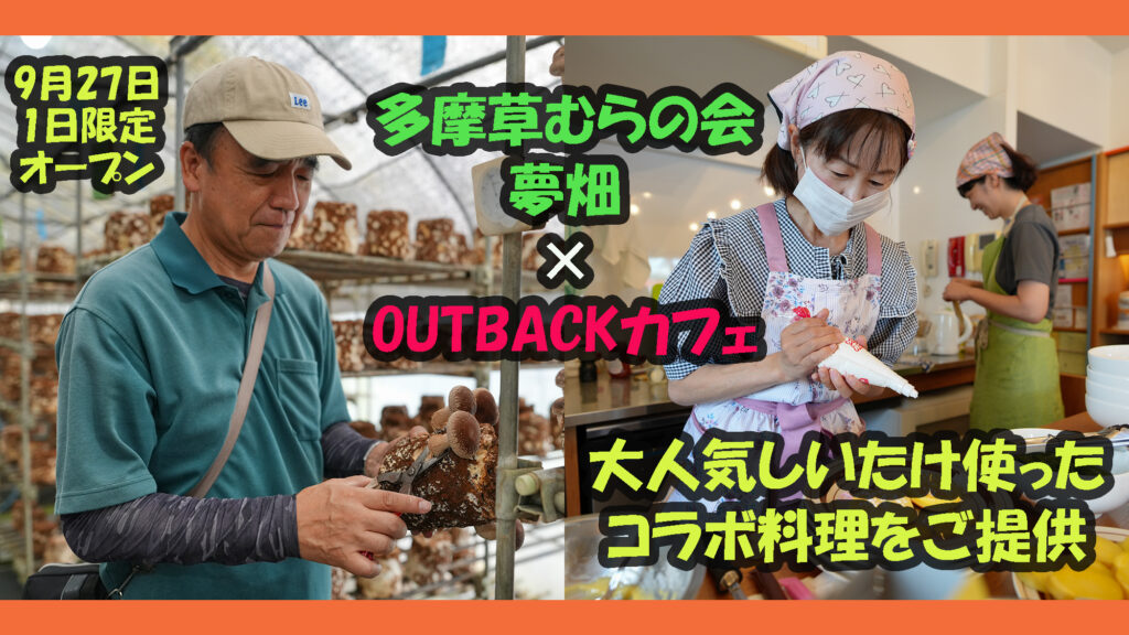9月27日、OUTBACKカフェ第2弾を開店/多摩草むらの会・夢畑とコラボした超美味しい夢畑しいたけ定食をご提供